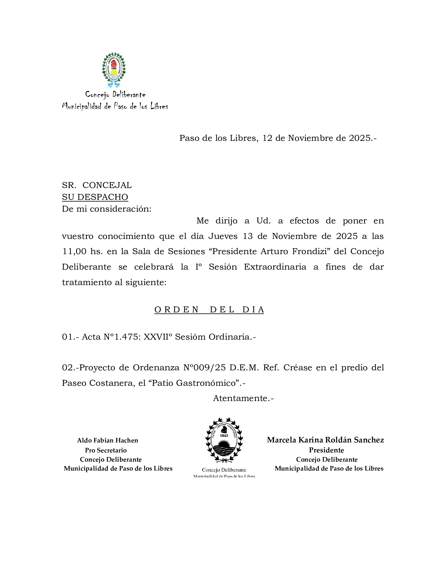 Convocados a una sesión extraordinaria, los concejales deberán ocupar sus bancas para aprobar el acta de la última sesión, realizada en el periodo ordinario, y luego discutirán los alcances del “Proyecto de Ordenanza Nº009/25” presentado por Ascúa a través de la figura del Departamento Ejecutivo Municipal (DEM).